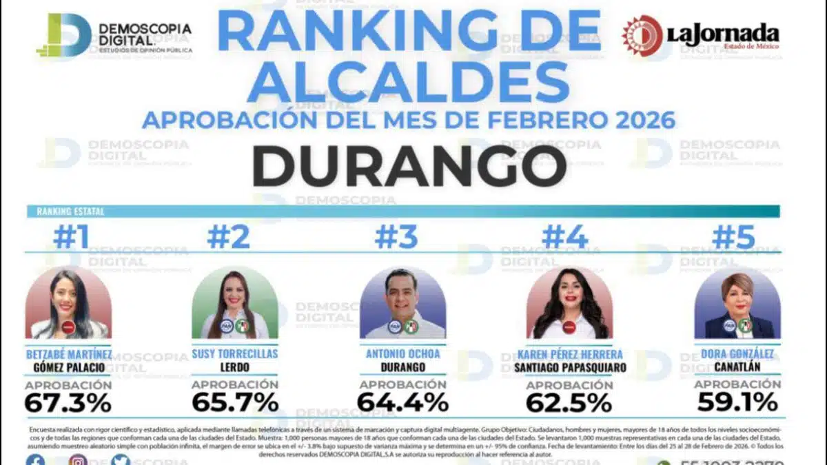 Betzabé Martínez lidera la aprobación ciudadana en Durango