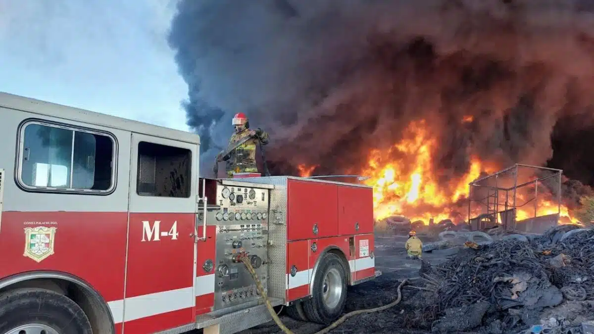 Controlan incendio en Gómez Palacio tras quema de llantas