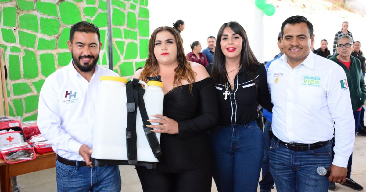 En esta comunidad, ubicada a seis horas de la capital de Durango, el diputado entregó botiquines, palas, bombas aspersoras, pozaderas y tijeras a los agricultores, y anunció que ha estado gestionando en la Ciudad de México la posibilidad de ampliar el programa en Santiago Papasquiaro.