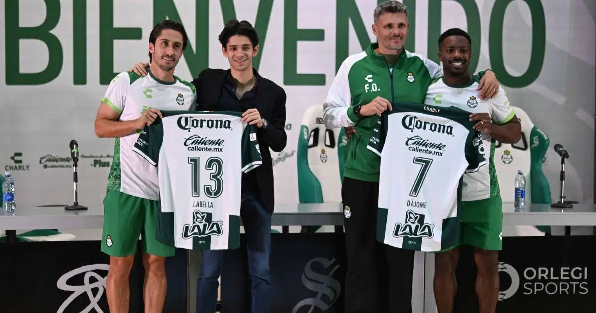 En un emotivo evento realizado en el Auditorio Orlegi de Territorio Santos Modelo, el Club Santos Laguna oficializó la incorporación de dos importantes refuerzos para el Clausura 2025: Javier Abella y Cristian Dájome. La conferencia de prensa contó con la presencia de Alejandro Irarragorri, presidente del club, y Fernando Ortiz, director técnico del Primer Equipo.